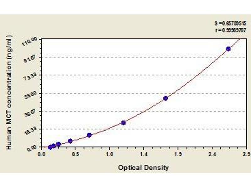 - This assay employs the quantitative sandwich enzyme immunoassay technique. Antibody specific for MCT has been pre-coated onto a microplate. Standards and samples are pipetted into the wells and any MCT present is bound by the immobilized antibody. After removing any unbound substances, a biotin-conjugated antibody specific for MCT is added to the wells. After washing, avidin conjugated Horseradish Peroxidase (HRP) is added to the wells. Following a wash to remove any unbound avidin-enzyme reagent, a substrate solution is added to the wells and color develops in proportion to the amount of MCT bound in the initial step. The color development is stopped and the intensity of the color is measured.