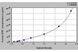 - This assay employs the quantitative sandwich enzyme immunoassay technique. Antibody specific for GRP has been pre-coated onto a microplate. Standards and samples are pipetted into the wells and any GRP present is bound by the immobilized antibody. After removing any unbound substances, a biotin-conjugated antibody specific for GRP is added to the wells. After washing, avidin conjugated Horseradish Peroxidase (HRP) is added to the wells. Following a wash to remove any unbound avidin-enzyme reagent, a substrate solution is added to the wells and color develops in proportion to the amount of GRP bound in the initial step. The color development is stopped and the intensity of the color is measured.