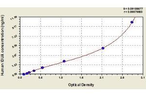 - This assay employs the quantitative sandwich enzyme immunoassay technique. Antibody specific for IDUA has been pre-coated onto a microplate. Standards and samples are pipetted into the wells and any IDUA present is bound by the immobilized antibody. After removing any unbound substances, a biotin-conjugated antibody specific for IDUA is added to the wells. After washing, avidin conjugated Horseradish Peroxidase (HRP) is added to the wells. Following a wash to remove any unbound avidin-enzyme reagent, a substrate solution is added to the wells and color develops in proportion to the amount of IDUA bound in the initial step. The color development is stopped and the intensity of the color is measured.