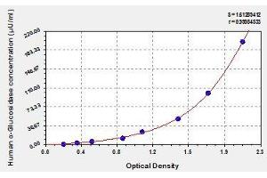 - This assay employs the quantitative sandwich enzyme immunoassay technique. Antibody specific for alpha-Glucosidase has been pre-coated onto a microplate. Standards and samples are pipetted into the wells and any alpha-Glucosidase present is bound by the immobilized antibody. After removing any unbound substances, a biotin-conjugated antibody specific for alpha-Glucosidase is added to the wells. After washing, avidin conjugated Horseradish Peroxidase (HRP) is added to the wells. Following a wash to remove any unbound avidin-enzyme reagent, a substrate solution is added to the wells and color develops in proportion to the amount of alpha-Glucosidase bound in the initial step. The color development is stopped and the intensity of the color is measured.