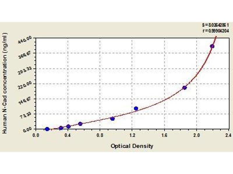 This assay employs the quantitative sandwich enzyme immunoassay technique. Antibody specific for N-Cad has been pre-coated onto a microplate. Standards and samples are pipetted into the wells and any N-Cad present is bound by the immobilized antibody. After removing any unbound substances, a biotin-conjugated antibody specific for N-Cad is added to the wells. After washing, avidin conjugated Horseradish Peroxidase (HRP) is added to the wells. Following a wash to remove any unbound avidin-enzyme reagent, a substrate solution is added to the wells and color develops in proportion to the amount of N-Cad bound in the initial step. The color development is stopped and the intensity of the color is measured.