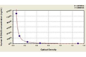 Create a standard curve by reducing the data using computer software capable of generating a four parameter logistic (4-PL) curve fit. As an alternative, construct a standard curve by plotting the mean absorbance for each standard on the x-axis against the concentration on the y-axis and draw a best fit curve through the points on the graph. The data may be linearized by plotting the log of the target antigen concentration versus the log of the O.D. and the best fit line can be determined by regression analysis. This procedure will produce an adequate but less precise fit of the data.