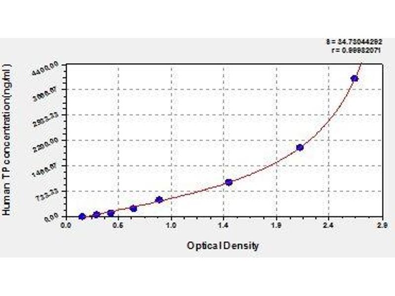 - This assay employs the quantitative sandwich enzyme immunoassay technique. Antibody specific for TP has been pre-coated onto a microplate. Standards and samples are pipetted into the wells and any TP present is bound by the immobilized antibody. After removing any unbound substances, a biotin-conjugated antibody specific for TP is added to the wells. After washing, avidin conjugated Horseradish Peroxidase (HRP) is added to the wells. Following a wash to remove any unbound avidin-enzyme reagent, a substrate solution is added to the wells and color develops in proportion to the amount of TP bound in the initial step. The color development is stopped and the intensity of the color is measured.