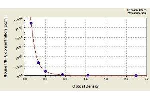 - Antibody specific for INHA has been pre-coated onto a microplate. Standards and samples are pipetted into the wells and any INHA present is bound by the immobilized antibody. After removing any unbound substances, a biotin-conjugated antibody specific for INHA is added to the wells. After washing, avidin conjugated Horseradish Peroxidase (HRP) is added to the wells. Following a wash to remove any unbound avidin-enzyme reagent, a substrate solution is added to the wells and color develops in proportion to the amount of INHA bound in the initial step. The color development is stopped and the intensity of the color is measured.