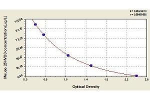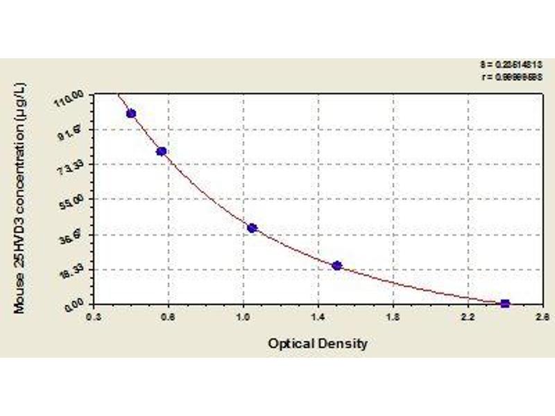 Create a standard curve by reducing the data using computer software capable of generating a four parameter logistic (4-PL) curve fit. As an alternative, construct a standard curve by plotting the mean absorbance for each standard on the x-axis against the concentration on the y-axis and draw a best fit curve through the points on the graph. The data may be linearized by plotting the log of the target antigen concentration versus the log of the O.D. and the best fit line can be determined by regression analysis. This procedure will produce an adequate but less precise fit of the data.