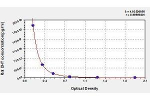 - This assay employs the competitive inhibition enzyme immunoassay technique. The microtiter plate provided in this kit has been pre-coated with goat-anti-rabbit antibody. Standards or samples are added to the appropriate microtiter plate wells with an antibody specific for DHT and Horseradish Peroxidase (HRP) conjugated DHT. The competitive inhibition reaction is launched between with HRP labeled DHT and unlabeled DHT with the antibody. A substrate solution is added to the wells and the color develops in opposite to the amount of DHT in the sample. The color development is stopped and the intensity of the color is measured.