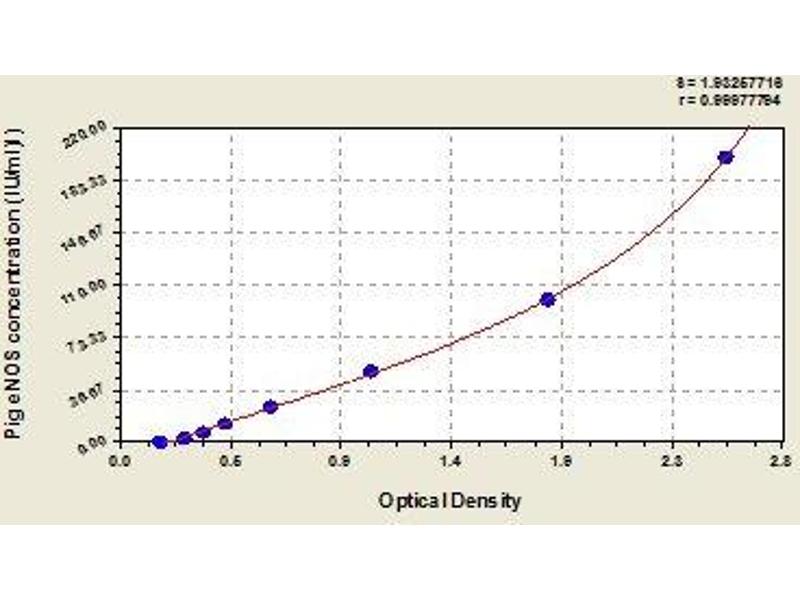 - Antibody specific for NOS3 has been pre-coated onto a microplate. Standards and samples are pipetted into the wells and any NOS3 present is bound by the immobilized antibody. After removing any unbound substances, a biotin-conjugated antibody specific for NOS3 is added to the wells. After washing, avidin conjugated Horseradish Peroxidase (HRP) is added to the wells. Following a wash to remove any unbound avidin-enzyme reagent, a substrate solution is added to the wells and color develops in proportion to the amount of NOS3 bound in the initial step. The color development is stopped and the intensity of the color is measured.