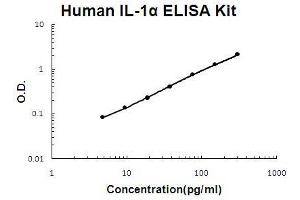 Background: Interleukin-1 alpha(IL-1 alpha) and interleukin-1 beta(IL-1 beta) are two biochemically distinct, but distantly related, polypeptidic cytokines that play a key role in inflammation, immunologic reactions, and tissue repair. IL-1 alpha has been implicated in the pathogenesis of infectious, autoimmune and inflammatory diseases. Recently, it has been shown that IL-1 alpha is identical to hematopoietin 1, which is described as a hematopoietic growth factor acting on early progenitor cells in synergy with other hematopoietic growth factors. The human interleukin 1 alpha gene is assigned to chromosome 2. Genetic polymorphisms at interleukin(IL)-1alpha and IL-1beta have been recently suggested to be associated with severity of adult periodontitis. The murine IL-1 alpha and IL-1 beta genes encode structurally and evolutionarily related cytokines that exert a regulatory role in numerous physiological processes including hemopoiesis. The standard product used in this kit is recombinant human IL-1alpha with the molecular mass of 18 kDa.