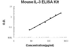 - mouse IL-3 ELISA Kit was based on standard sandwich enzyme-linked immune-sorbent assay technology. A monoclonal antibody from rat specific for IL-3 has been precoated onto 96-well plates. Standards (E.coli,A27-C166) and test samples are added to the wells, a biotinylated detection polyclonal antibody from goat specific for IL-3 is added subsequently and then followed by washing with PBS or TBS buffer. Avidin-Biotin-Peroxidase Complex was added and unbound conjugates were washed away with PBS or TBS buffer. HRP substrate TMB was used to visualize HRP enzymatic reaction. TMB was catalyzed by HRP to produce a blue color product that changed into yellow after adding acidic stop solution. The density of yellow is proportional to the mouse IL-3 amount of sample captured in plate.