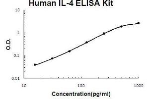 Background: Interleukin-4(IL-4), also knowns as a B-cell stimulatory factor1(BSF1), is an immunomodulatory cytokine, which can inhibit the growth of tumour cells.The human cDNA contains a single open reading frame encoding a protein of 153 amino acids, including a putative signal peptide. IL-4 may act as an autocrine growth factor in pancreatic cancer cells and also give rise to the possibility that cancer-derived IL-4 may suppress cancer-directed immunosurveillance in vivo in addition to its growth-promoting effects, thereby facilitating pancreatic tumor growth and metastasis. The mouse and human genes and their protein products show structural and functional similarities. The human IL-4 gene, which occurs as a single copy in the haploid genome, is mapped on chromosome 5. The standard product used in this kit is recombinant human IL-4, consisting of 130 amino acids with the molecular mass of 14KDa.