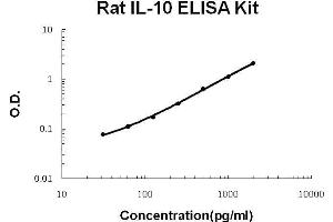 - rat IL-10 ELISA Kit was based on standard sandwich enzyme-linked immune-sorbent assay technology. A monoclonal antibody from mouse specific for IL-10 has been precoated onto 96-well plates. Standards(E.coli, S19-N178) and test samples are added to the wells, a biotinylated detection polyclonal antibody from goat specific for IL-10 is added subsequently and then followed by washing with PBS or TBS buffer. Avidin-Biotin-Peroxidase Complex was added and unbound conjugates were washed away with PBS or TBS buffer. HRP substrate TMB was used to visualize HRP enzymatic reaction. TMB was catalyzed by HRP to produce a blue color product that changed into yellow after adding acidic stop solution. The density of yellow is proportional to the rat IL-10 amount of sample captured in plate.