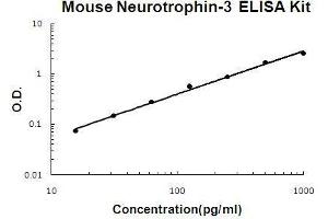 - mouse Neurotrophin-3 ELISA Kit was based on standard sandwich enzyme-linked immune-sorbent assay technology. A monoclonal antibody from rat specific for Neurotrophin-3 has been precoated onto 96-well plates. Standards(sf21, Y139-T257) and test samples are added to the wells, a biotinylated detection polyclonal antibody from goat specific for Neurotrophin-3 is added subsequently and then followed by washing with PBS or TBS buffer. Avidin-Biotin-Peroxidase Complex was added and unbound conjugates were washed away with PBS or TBS buffer. HRP substrate TMB was used to visualize HRP enzymatic reaction. TMB was catalyzed by HRP to produce a blue color product that changed into yellow after adding acidic stop solution. The density of yellow is proportional to the mouse Neurotrophin-3 amount of sample captured in plate.