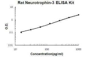 - rat Neurotrophin-3 ELISA Kit was based on standard sandwich enzyme-linked immune-sorbent assay technology. A monoclonal antibody from mouse specific for Neurotrophin-3 has been precoated onto 96-well plates. Standards(sf21, Y139-T257) and test samples are added to the wells, a biotinylated detection polyclonal antibody from goat specific for Neurotrophin-3 is added subsequently and then followed by washing with PBS or TBS buffer. Avidin-Biotin-Peroxidase Complex was added and unbound conjugates were washed away with PBS or TBS buffer. HRP substrate TMB was used to visualize HRP enzymatic reaction. TMB was catalyzed by HRP to produce a blue color product that changed into yellow after adding acidic stop solution. The density of yellow is proportional to the rat Neurotrophin-3 amount of sample captured in plate.