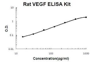 - rat VEGF ELISA Kit was based on standard sandwich enzyme-linked immune-sorbent assay technology. A monoclonal antibody from mouse specific for VEGF has been precoated onto 96-well plates. Standards (NSO,A27-R190) and test samples are added to the wells, a biotinylated detection polyclonal antibody from goat specific for VEGF is added subsequently and then followed by washing with PBS or TBS buffer. Avidin-Biotin-Peroxidase Complex was added and unbound conjugates were washed away with PBS or TBS buffer. HRP substrate TMB was used to visualize HRP enzymatic reaction. TMB was catalyzed by HRP to produce a blue color product that changed into yellow after adding acidic stop solution. The density of yellow is proportional to the rat VEGF amount of sample captured in plate.