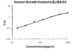 - human GH ELISA Kit was based on standard sandwich enzyme-linked immune-sorbent assay technology. A monoclonal antibody from mouse specific for GH has been precoated onto 96-well plates. Standards(E.coli, F27-F217) and test samples are added to the wells, a biotinylated detection polyclonal antibody from goat specific for GH is added subsequently and then followed by washing with PBS or TBS buffer. Avidin-Biotin-Peroxidase Complex was added and unbound conjugates were washed away with PBS or TBS buffer. HRP substrate TMB was used to visualize HRP enzymatic reaction. TMB was catalyzed by HRP to produce a blue color product that changed into yellow after adding acidic stop solution. The density of yellow is proportional to the human GH amount of sample captured in plate.