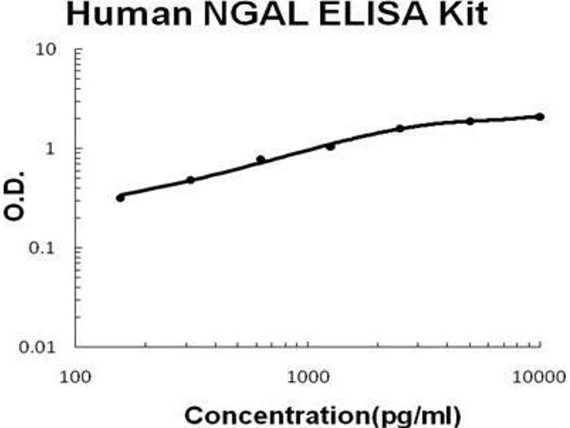 Background: Lipocalin-2(LCN2), also known as NGAL, is a protein associated with neutrophil gelatinase.1 The LCN2 gene is located at 9q34 and contains 7 exons.2 The 25-kD LCN2 protein is believed to bind small lipophilic substances such as bacteria-derived lipopolysaccharide(LPS) and formylpeptides and may function as a modulator of inflammation. NGAL tightly binds bacterial catecholate-type ferric siderophores through a cyclically permuted, hybrid electrostatic/cation-pi interaction and is a potent bacteriostatic agent in iron-limiting conditions.3 The primary LCN2 transcript is 3,696 nucleotides long, and the processed transcript is 809 nucleotides long.4 LCN2 expression in adult bone marrow, uterus, prostate, salivary gland, stomach, appendix, colon, trachea, and lung, and in fetal spleen and lung.The standard product used in this kit is recombinant human NGAL, consisting of 178 amino acids with the molecular mass of 22KDa.