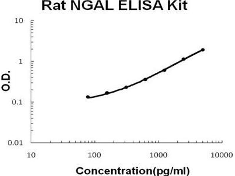 Background: Lipocalin-2(LCN2), also known as NGAL, is a protein associated with neutrophil gelatinase.1 The LCN2 gene is located at 9q34 and contains 7 exons.2 The 25-kD LCN2 protein is believed to bind small lipophilic substances such as bacteria-derived lipopolysaccharide(LPS) and formylpeptides and may function as a modulator of inflammation. NGAL tightly binds bacterial catecholate-type ferric siderophores through a cyclically permuted, hybrid electrostatic/cation-pi interaction and is a potent bacteriostatic agent in iron-limiting conditions.3 The primary LCN2 transcript is 3,696 nucleotides long, and the processed transcript is 809 nucleotides long.4 LCN2 expression in adult bone marrow, uterus, prostate, salivary gland, stomach, appendix, colon, trachea, and lung, and in fetal spleen and lung. The standard product used in this kit is recombinant rat NGAL, consisting of 177 amino acids with the molecular mass of 21 kDa.