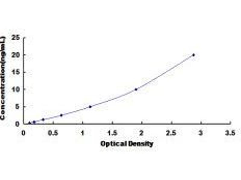 2. Standard - Reconstitute the Standard with 0.9 mL of Standard Diluent, keep for 10 minutes at room temperature, shake gently (not to foam). The concentration of the standard in the stock solution is 10 ng/mL. Prepare 7 tubes containing 0.5 mL Standard Diluent and produce a double dilution series. Mix each tube thoroughly before the next transfer. Set up 7 points of diluted standard such as 10 ng/mL, 5 ng/mL, 2.5 ng/mL, 1.25 ng/mL, 0.625 ng/mL, 0.312 ng/mL, 0.156 ng/mL, and the last microcentrifuge tube with Standard Diluent is the blank as 0 ng/mL.