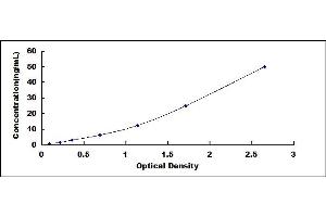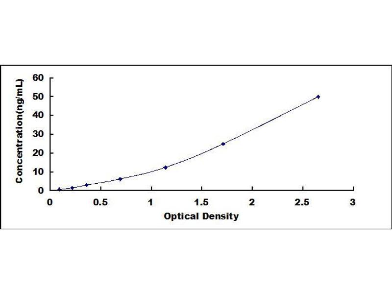 In order to make the calculation easier, we plot the O.D. value of the standard (X-axis) against the known concentration of the standard (Y-axis), although concentration is the independent variable and O.D. value is the dependent variable. However, the O.D. values of the standard curve may vary according to the conditions of assay performance (e.g. operator, pipetting technique, washing technique or temperature effects), plotting log of the data to establish standard curve for each test is recommended. Typical standard curve below is provided for reference only. -
