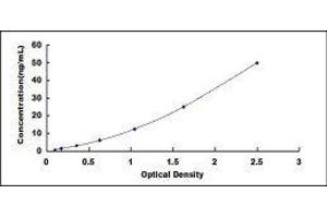 In order to make the calculation easier, we plot the O.D. value of the standard (X-axis) against the known concentration of the standard (Y-axis), although concentration is the independent variable and O.D. value is the dependent variable. However, the O.D. values of the standard curve may vary according to the conditions of assay performance (e.g. operator, pipetting technique, washing technique or temperature effects), plotting log of the data to establish standard curve for each test is recommended. Typical standard curve below is provided for reference only. -