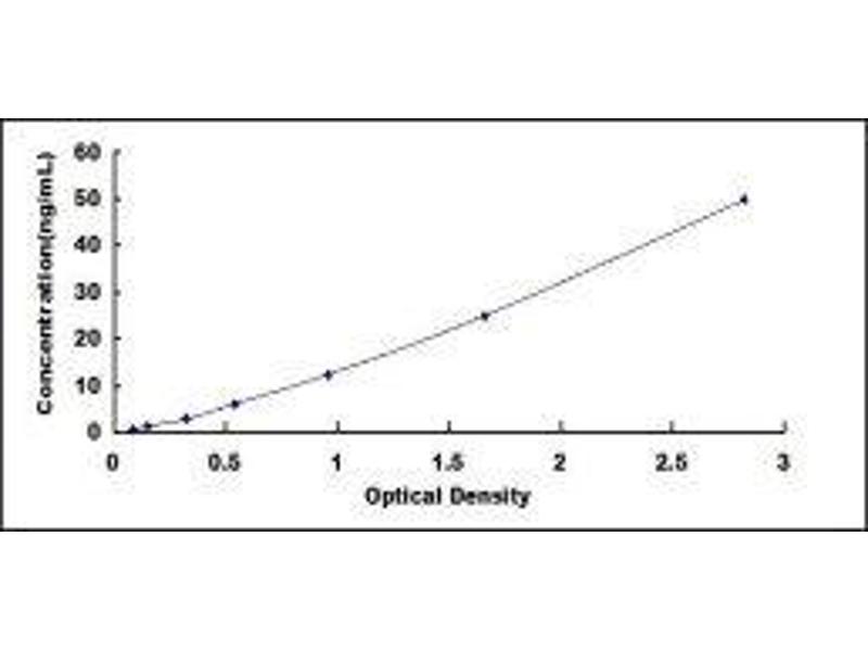 2. Standard - Reconstitute the Standard with 1.0 mL of Standard Diluent, keep for 10 minutes at room temperature, shake gently (not to foam). The concentration of the standard in the stock solution is 200 ng/mL. Firstly dilute the stock solution to 50 ng/mL and the diluted standard serves as the highest standard (50 ng/mL). Then prepare 7 tubes containing 0.5 mL Standard Diluent and use the diluted standard to produce a double dilution series. Mix each tube thoroughly before the next transfer. Set up 7 points of diluted standard such as 50 ng/mL, 25 ng/mL, 12.5 ng/mL, 6.25 ng/mL, 3.12 ng/mL, 1.56 ng/mL, 0.78 ng/mL, and the last microcentrifuge tube with Standard Diluent is the blank as 0 ng/mL.