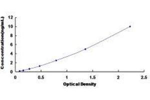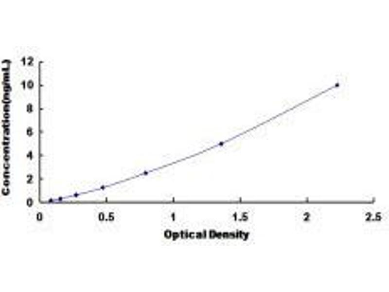 In order to make the calculation easier, we plot the O.D. value of the standard (X-axis) against the known concentration of the standard (Y-axis), although concentration is the independent variable and O.D. value is the dependent variable. However, the O.D. values of the standard curve may vary according to the conditions of assay performance (e.g. operator, pipetting technique, washing technique or temperature effects), plotting log of the data to establish standard curve for each test is recommended. Typical standard curve below is provided for reference only. -