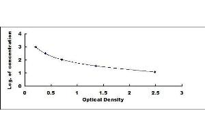 In order to make the calculation easier, we plot the O.D. value of the standard (X-axis) against the log of concentration of the standard (Y-axis), although concentration is the independent variable and O.D. value is the dependent variable. The O.D. values of the standard curve may vary according to the conditions of assay performance (e.g. operator, pipetting technique, washing technique or temperature effects). Typical standard curve below is provided for reference only. -