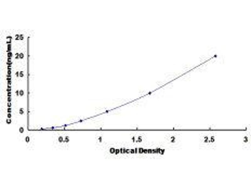 In order to make the calculation easier, we plot the O.D. value of the standard (X-axis) against the known concentration of the standard (Y-axis), although concentration is the independent variable and O.D. value is the dependent variable. However, the O.D. values of the standard curve may vary according to the conditions of assay performance (e.g. operator, pipetting technique, washing technique or temperature effects), plotting log of the data to establish standard curve for each test is recommended. Typical standard curve below is provided for reference only. -