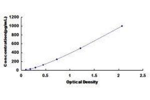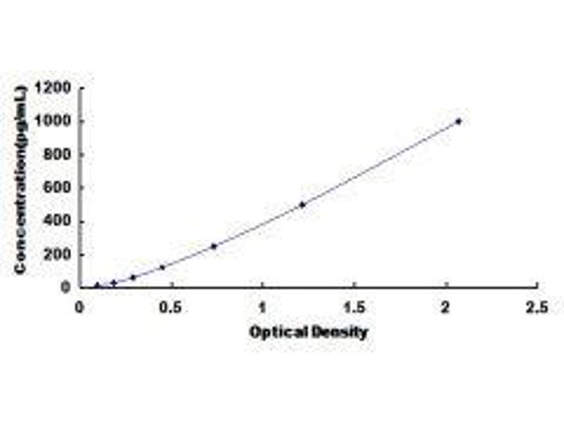 In order to make the calculation easier, we plot the O.D. value of the standard (X-axis) against the known concentration of the standard (Y-axis), although concentration is the independent variable and O.D. value is the dependent variable. However, the O.D. values of the standard curve may vary according to the conditions of assay performance (e.g. operator, pipetting technique, washing technique or temperature effects), plotting log of the data to establish standard curve for each test is recommended. Typical standard curve below is provided for reference only. -