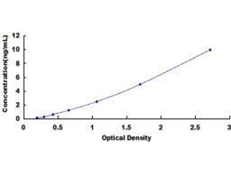 2. Standard - Reconstitute the Standard with 1.0 mL of Standard Diluent, keep for 10 minutes at room temperature, shake gently (not to foam). The concentration of the standard in the stock solution is 10 ng/mL. Prepare 7 tubes containing 0.5 mL Standard Diluent and produce a double dilution series. Mix each tube thoroughly before the next transfer. Set up 7 points of diluted standard such as 10 ng/mL, 5 ng/mL, 2.5 ng/mL, 1.25 ng/mL, 0.625 ng/mL, 0.312 ng/mL, 0.156 ng/mL, and the last microcentrifuge tube with Standard Diluent is the blank as 0 ng/mL.