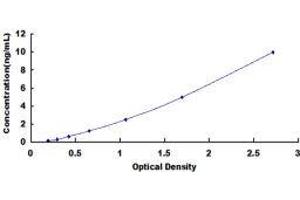 In order to make the calculation easier, we plot the O.D. value of the standard (X-axis) against the known concentration of the standard (Y-axis), although concentration is indeed the independent variable while O.D. value is the dependent variable. Further, in this part, in order to help the customer perform the assay more visual, we provide the customer with the raw data (not the log of data). However, plotting log of the data to construct the curve will be recommended. The O.D. values of the standard curve may vary according to the conditions of assay performance (e.g. operator, pipetting technique, washing technique or temperature effects). This curve is provided for demonstration only. The customers should establish their own standard curve for each test conducted.