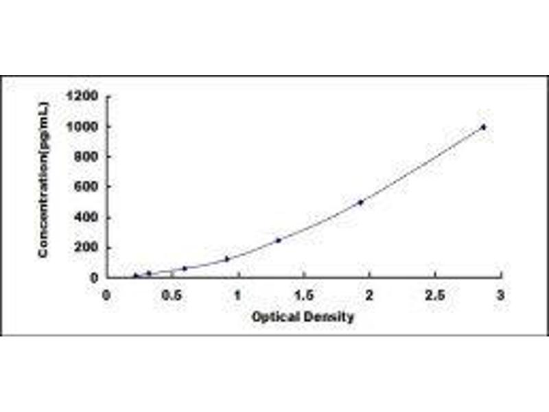 In order to make the calculation easier, we plot the O.D. value of the standard (X-axis) against the known concentration of the standard (Y-axis), although concentration is the independent variable and O.D. value is the dependent variable. However, the O.D. values of the standard curve may vary according to the conditions of assay performance (e.g. operator, pipetting technique, washing technique or temperature effects), plotting log of the data to establish standard curve for each test is recommended. Typical standard curve below is provided for reference only. -