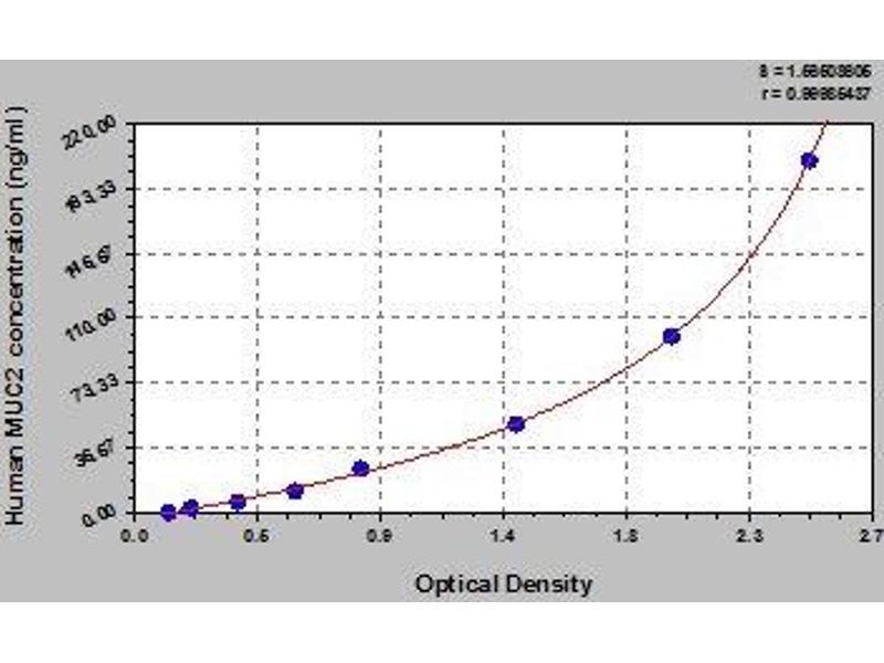 - This assay employs the quantitative sandwich enzyme immunoassay technique. Antibody specific for MUC2 has been pre-coated onto a microplate. Standards and samples are pipetted into the wells and any MUC2 present is bound by the immobilized antibody. After removing any unbound substances, a biotin-conjugated antibody specific for MUC2 is added to the wells. After washing, avidin conjugated Horseradish Peroxidase (HRP) is added to the wells. Following a wash to remove any unbound avidin-enzyme reagent, a substrate solution is added to the wells and color develops in proportion to the amount of MUC2 bound in the initial step. The color development is stopped and the intensity of the color is measured.