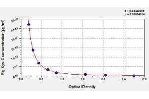 Create a standard curve by reducing the data using computer software capable of generating a four parameter logistic (4-PL) curve fit. As an alternative, construct a standard curve by plotting the mean absorbance for each standard on the x-axis against the concentration on the y-axis and draw a best fit curve through the points on the graph. The data may be linearized by plotting the log of the target antigen concentration versus the log of the O.D. and the best fit line can be determined by regression analysis. This procedure will produce an adequate but less precise fit of the data.