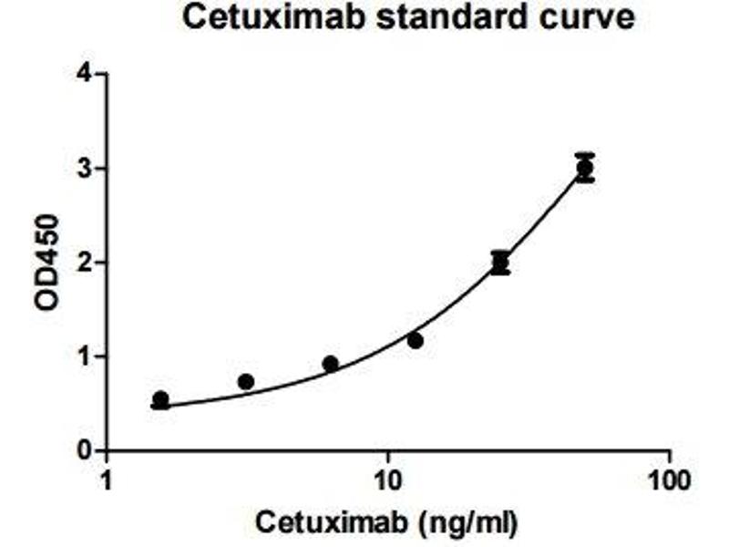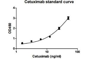 - The Cetuximab ELISA kit is designed to measure free Cetuximab with high specificity and sensitivity . This assay employs the sandwich enzyme immunoassay technique. A precoated anti-Cetuximab 96 well plate is provided. Calibrator, quality control samples and test samples are pipetted into the appropriate wells. Cetuximab present in biological matrices is bound by the immobilized capture antibody. After washing away any unbound substances, enzyme linked detection antibody is added to the wells. The plate is washed to remove any unbound antibody-enzyme reagent and a substrate solution is added to the wells for color development. The color development is proportional to the amount of Cetuximab present in test samples and the concentration is calculated from the standard series.