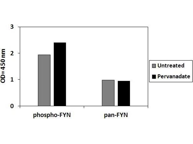 This ELISA kit recognizes Human FYN phosphorylated at site Tyrosine-530 as well as total FYN.