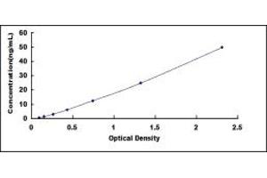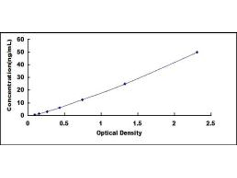 2. Standard - Reconstitute the Standard with 1.0 mL of Standard Diluent, keep for 10 minutes at room temperature, shake gently (not to foam). The concentration of the standard in the stock solution is 100 ng/mL. Firstly dilute the stock solution to 50 ng/mL and the diluted standard serves as the highest standard (50 ng/mL). Then prepare 7 tubes containing 0.5 mL Standard Diluent and use the diluted standard to produce a double dilution series. Mix each tube thoroughly before the next transfer. Set up 7 points of diluted standard such as 50 ng/mL, 25 ng/mL, 12.5 ng/mL, 6.25 ng/mL, 3.12 ng/mL, 1.56 ng/mL, 0.78 ng/mL, and the last microcentrifuge tube with Standard Diluent is the blank as 0 ng/mL.