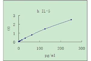 - Interleukin-5(IL-5)is a secreted glycoprotein that belongs to the α-helical group of cytokines (1-3). Unlike other family members, it is present as a covalently linked antiparallel dimer (4, 5). The cDNA for human IL-5 encodes a signal peptide and a 115 amino acid (aa) mature protein. Mature human IL-5 shares 70 % , 70 %, 62 %, 71 %, 70 % and 66 %, aa sequence identity with mouse, rat, canine, equine, feline and porcine IL-5, respectively and shows cross-reactivity with mouse IL-5. IL-5 is primarily produced by CD4+ Th2 cells, but also by activated eosinophils, mast cells, EBV-transformed B cells, Reed-Sternberg cells in Hodgkin