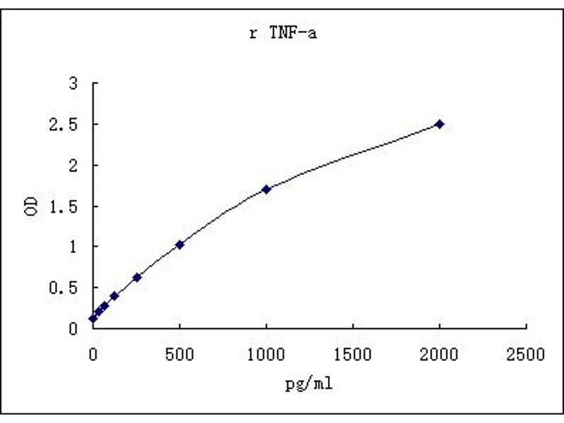 - The prototype ligand of theTNFsuperfamily, TNF-α/TNFSF1A, is a pleiotropic cytokine that plays a central role in inflammation and apoptosis (1-4).TNF-α is produced by activated macrophages and other cell types including T and B cells, NK cells, LAK cells, astrocytes, endothelial cells, smooth muscle cells and some tumor cells (5-8).Rat TNF-α cDNA encodes a 235 amino acid (aa) residue type II membrane protein (9). The 156 aa residue soluble TNF-αis released from the C-terminus of the membrane-anchored TNF-α by TNF-α-converting enzyme (TACE), a matrix metalloprotease (10).The membrane-anchored form of TNF-α has been shown to have lytic activity and may also have an important role in intercellular communication (11). The biologically active TNF-α has been shown to exist as a trimer (12, 13).TNF-α is reported to promote inflammatory cell infiltration by upregulating leukocyte adhesion molecules on endothelial cells, serve as a chemotactic agent for monocytes, and activate phagocyte killing mechanisms (14). Deficiencies in either TNF-α or its receptors can increase susceptibility to infection by intracellular pathogens (15-16). TNF-α may also play a role in lymphoid tissue development. Knockout mice lack splenic B cell follicles and the ability to form germinal centers (17, 18). Other potential physiological roles for TNF-α and its receptors include regulating the differentiation of hematopoietic stem and progenitor cells (19-21).