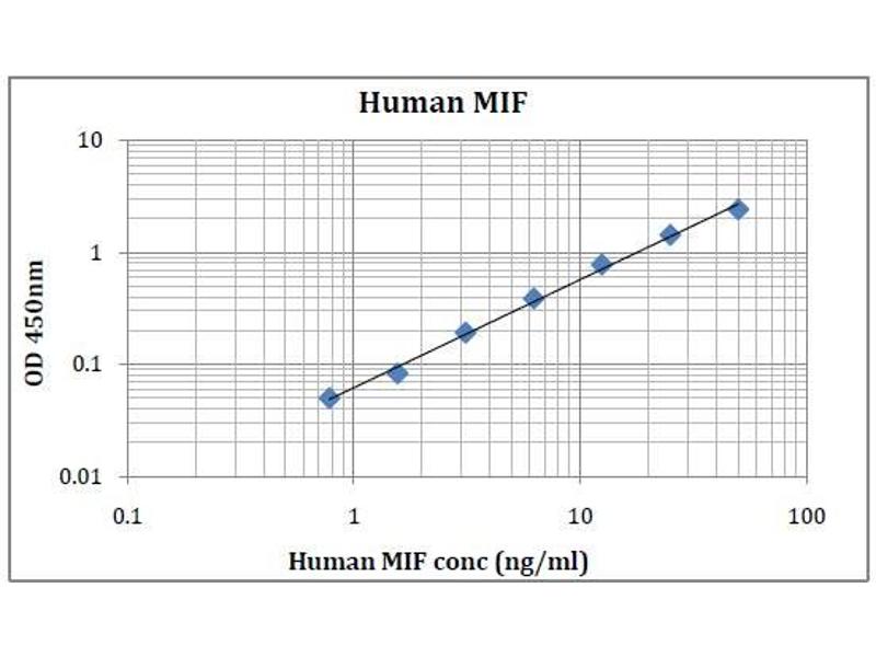 - This assay employs an antibody specific for Anti-human MIF coated on a 96-well plate. Standards and samples are pipetted into the wells and MIF present in a sample is bound to the wells by the immobilized antibody. The wells are washed and biotinylated anti-Human MIF antibody is added. After washing away unbound biotinylated antibody, HRP-conjugated streptavidin is pipetted to the wells. The wells are again washed, a TMB substrate solution is added to the wells and color develops in proportion to the amount of MIF bound. The Stop Solution changes the color from blue to yellow, and the intensity of the color is measured at 450 nm.