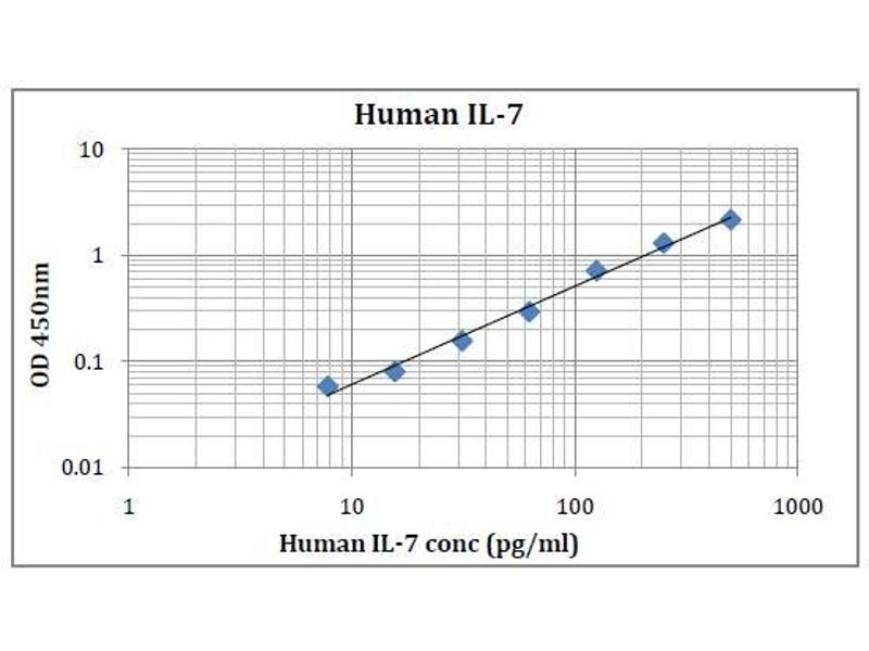 - This assay employs an antibody specific for Anti-humanIL-7 coated on a 96-well plate. Standards and samples are pipetted into the wells and IL-7 present in a sample is bound to the wells by the immobilized antibody. The wells are washed and biotinylated anti-humanIL-7antibody is added. After washing away unbound biotinylated antibody, HRP-conjugated streptavidin is pipetted to the wells. The wells are again washed, a TMB substrate solution is added to the wells and color develops in proportion to the amount of IL-7 bound. The Stop Solution changes the color from blue to yellow, and the intensity of the color is measured at 450 nm.
