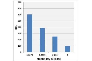 - Reaction Mix: Prepare a Reaction Mix by diluting the Fluorometric Probe 1:100, HRP 1:500, Lactase 1:10 and Glucose Oxidase 1:50 in 1X Assay Buffer. For example, add 10 μL Fluorometric Probe stock solution, 2 μL HRP stock solution, 100 μL of Lactase and 20 μL of Glucose Oxidase to 4 868 μL 1X Assay Buffer for a total of 1 mL. The above example Reaction Mix volume is enough for 20 assays. The Reaction Mix is stable for 1 day at 4 °C. Note: Scale the described example up or down as needed and prepare only enough for immediate use.