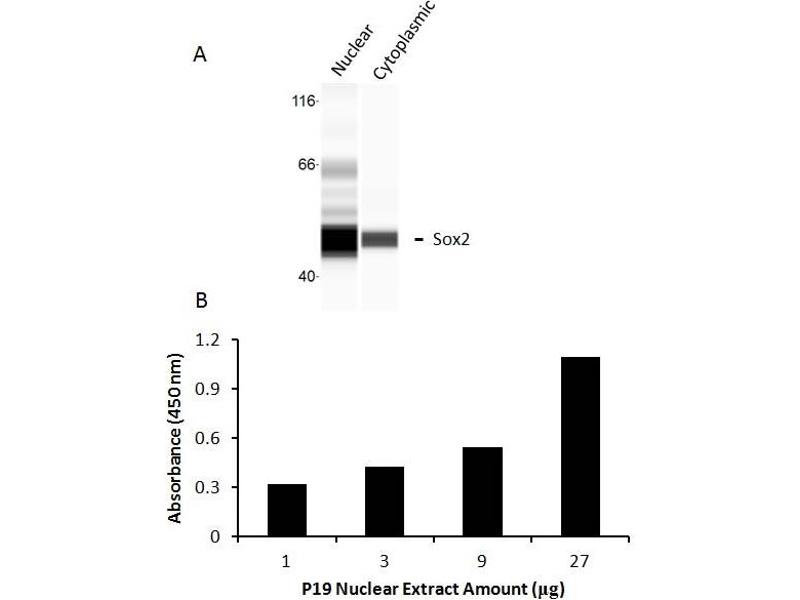 Human SOX2 Transcription Factor Activity Assay. This assay uses a dsDNA coated plate with canonical SOX2 binding sequences to semi-quantitatively detect active SOX2 in lysates or nuclear extracts. Only available in North America.