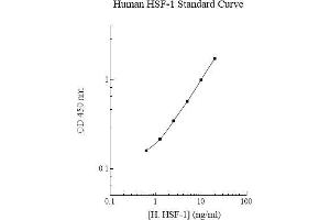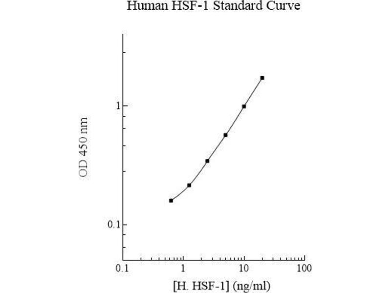 - The AssayMax™ Human HSF 1 ELISA (Enzyme-Linked Immunosorbent Assay) Kit is designed for detection of human HSF 1 in cell lysate and tissue extract samples. This assay employs a quantitative sandwich enzyme immunoassay technique that measures human HSF 1 in approximately 4 hours. A polyclonal antibody specific for human HSF 1 has been pre-coated onto a 96-well microplate with removable strips. HSF 1 in standards and samples is sandwiched by the immobilized antibody and a biotinylated polyclonal antibody specific for human HSF 1, which is recognized by a streptavidin- peroxidase (SP) conjugate. All unbound material is washed away and a peroxidase enzyme substrate is added. The color development is stopped and the intensity of the color is measured.
