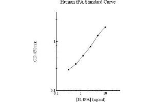 - Human tPA Microplate: A 96 well polystyrene microplate (12 strips of 8 wells) coated with a polyclonal antibody against tPA. Sealing Tapes: Each kit contains 3 precut, pressure sensitive sealing tapes that can be cut to fit the format of the individual assay. Human tPA Standard: Human tPA in a buffered protein base (10 ng, lyophilized). Biotinylated Human tPA Antibody (50x): A 50-fold concentrated biotinylated antibody against human tPA (140 l). MIX Diluent Concentrate (10x): A 10-fold concentrated buffered protein base (30 ml). Wash Buffer Concentrate (20x): A 20-fold concentrated buffered surfactant (30 ml, 2 bottles). Streptavidin-Peroxidase Conjugate (SP Conjugate): A 100-fold concentrate (80 l). Chromogen Substrate: A ready-to-use stabilized peroxidase chromogen substrate tetramethylbenzidine (8 ml). Stop Solution: A 0.5 N hydrochloric acid to stop the chromogen substrate reaction (12 ml).