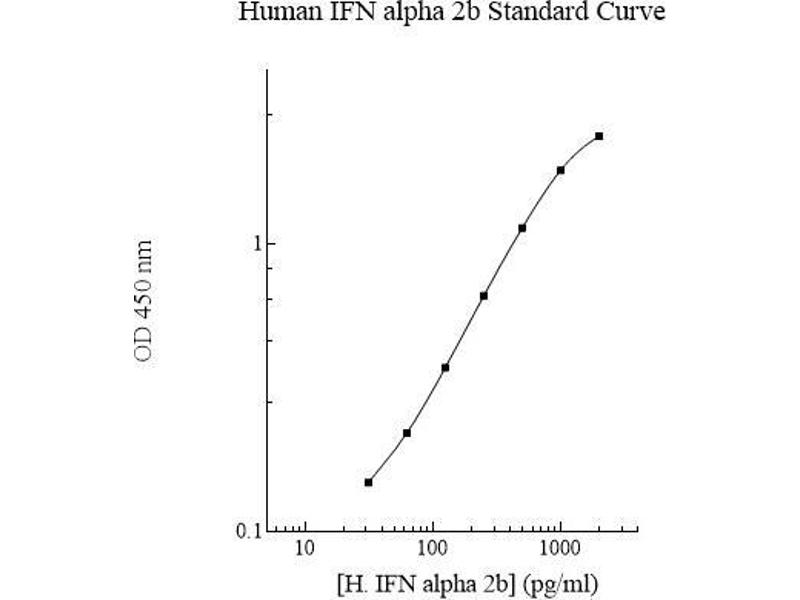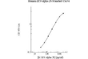 - The AssayMax™ Interferon alpha-2b (IFN alpha-2b) ELISA (Enzyme-Linked Immunosorbent Assay) kit is designed for detection of human IFN alpha-2b in plasma, serum, and cell culture samples. This assay employs a quantitative sandwich enzyme immunoassay technique that measures human IFN alpha- 2b in approximately 4 hours. A polyclonal antibody specific for human IFN alpha-2b has been pre-coated onto a 96-well microplate with removable strips. IFN alpha-2b in standards and samples is sandwiched by the immobilized antibody and a biotinylated polyclonal antibody specific for human IFN alpha-2b, which is recognized by a streptavidin-peroxidase conjugate. All unbound material is washed away and a peroxidase enzyme substrate is added. The color development is stopped and the intensity of the color is measured.