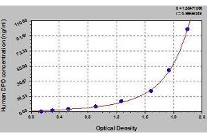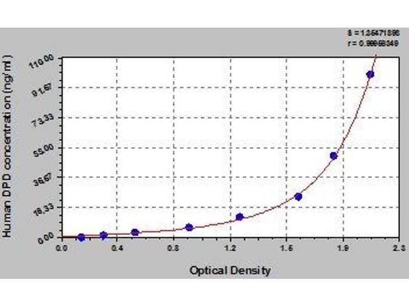 - This assay employs the quantitative sandwich enzyme immunoassay technique. Antibody specific for DPD has been pre-coated onto a microplate. Standards and samples are pipetted into the wells and any DPD present is bound by the immobilized antibody. After removing any unbound substances, a biotin-conjugated antibody specific for DPD is added to the wells. After washing, avidin conjugated Horseradish Peroxidase (HRP) is added to the wells. Following a wash to remove any unbound avidin-enzyme reagent, a substrate solution is added to the wells and color develops in proportion to the amount of DPD bound in the initial step. The color development is stopped and the intensity of the color is measured.