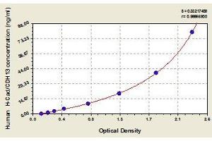 - This assay employs the quantitative sandwich enzyme immunoassay technique. Antibody specific for H-Cad/CDH13 has been pre-coated onto a microplate. Standards and samples are pipetted into the wells and any H-Cad/CDH13 present is bound by the immobilized antibody. After removing any unbound substances, a biotin-conjugated antibody specific for H-Cad/CDH13 is added to the wells. After washing, avidin conjugated Horseradish Peroxidase (HRP) is added to the wells. Following a wash to remove any unbound avidin-enzyme reagent, a substrate solution is added to the wells and color develops in proportion to the amount of H-Cad/CDH13 bound in the initial step. The color development is stopped and the intensity of the color is measured.