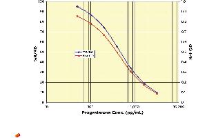 The concentration of the progesterone in the sample is calculated, after making suitable correction for the dilution of the sample, using software available with most plate readers. -