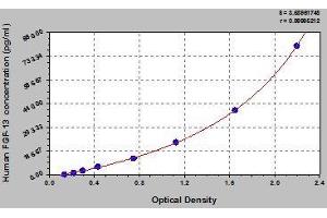 - Antibody specific for FGF13 has been pre-coated onto a microplate. Standards and samples are pipetted into the wells and any FGF13 present is bound by the immobilized antibody. After removing any unbound substances, a biotin-conjugated antibody specific for FGF13 is added to the wells. After washing, avidin conjugated Horseradish Peroxidase (HRP) is added to the wells. Following a wash to remove any unbound avidin-enzyme reagent, a substrate solution is added to the wells and color develops in proportion to the amount of FGF13 bound in the initial step. The color development is stopped and the intensity of the color is measured.
